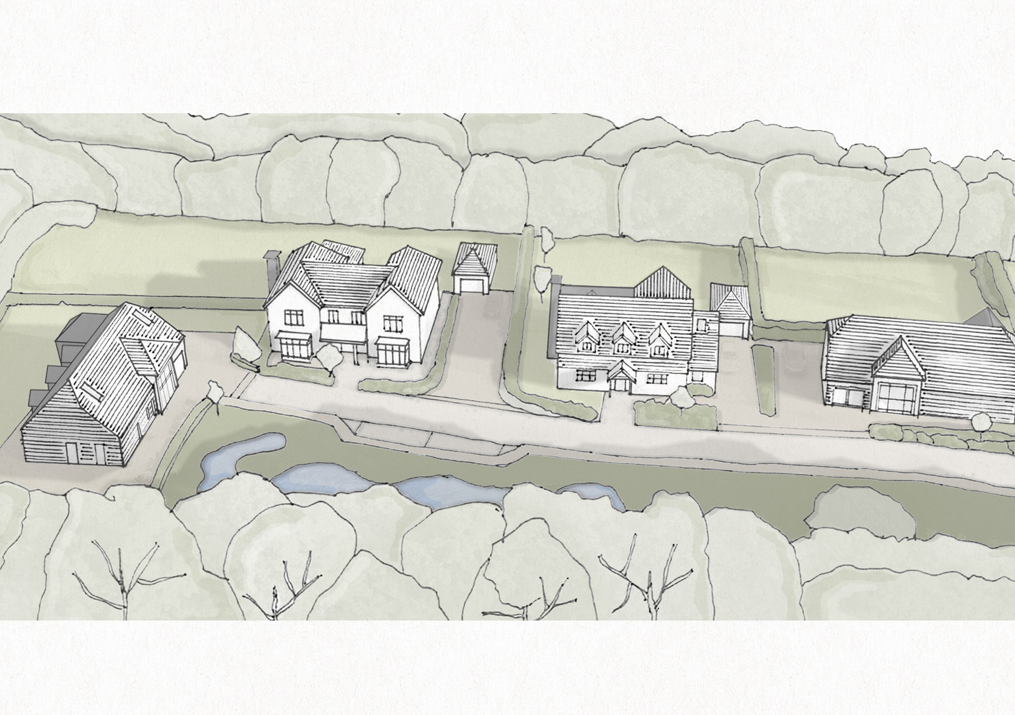 This thoughtfully designed development features four detached cottage-style homes, carefully crafted to blend seamlessly with the surrounding countryside. Located just beyond the defined settlement boundary, the site offers breathtaking views of the greenbelt, creating a tranquil and picturesque setting. Each home combines traditional charm with modern living, providing a perfect balance of comfort and style. This exclusive development offers an exceptional opportunity for those seeking a peaceful, countryside lifestyle with convenient access to nearby amenities.
